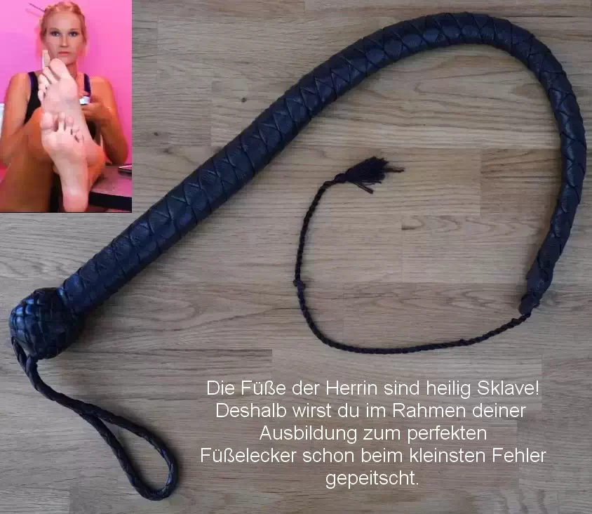 Alle meine Sklaven werden streng nach meinen Regeln am Fuß ausgebildet. Sobald sie mir gehören, werden sie ausgebildet und einer speziellen qualvollen Prozedur immer wieder ausgesetzt, um ihre Leistung schnell zu verbessern. Die Ausbildung wird nie beendet sein, solange der Sklave zu meinem Sklavenstall gehört. Er wird lebenslänglich ausgebildet und ist den Launen seiner Ausbilderin ausgeliefert. In regelmäßigen Abständen finden die Prüfungen statt. Der Schüler trägt das Halsband mit dem Ring nach hinten zum Rücken und wird vor einem Fusshocker oder Tisch positioniert. Die Hände werden streng auf dem Rücken zusammengebunden und schön schmerzhaft nach oben gezogen. Also möglichst hoch an das Halsband gefesselt. Solch ein Fesselriemen ist optimal, es geht aber auch gut mit einem Seil.